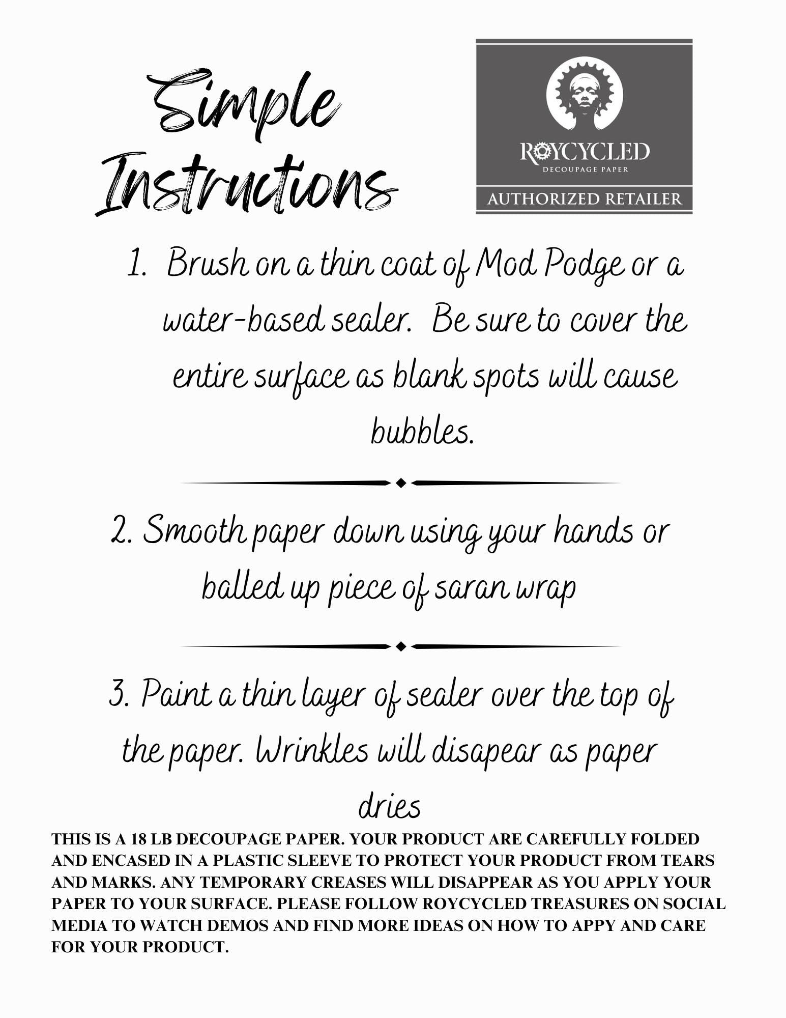This versatile paper works with any decoupage medium or decoupage glue. You can use it to decoupage wood, glass, marble--the options are nearly endless.
